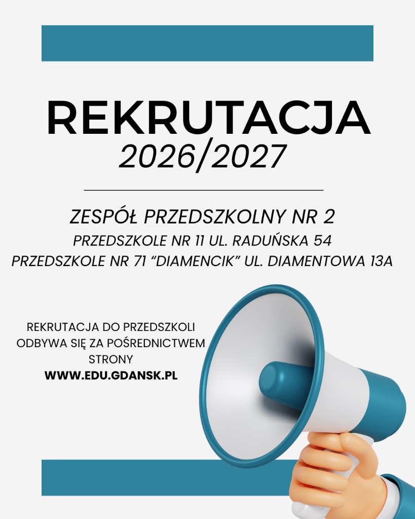 W Zespole Przedszkolnym nr 2 prowadzone są odrębne rekrutacje do Przedszkola nr 71 "Diamencik" i do Przedszkola nr 11.